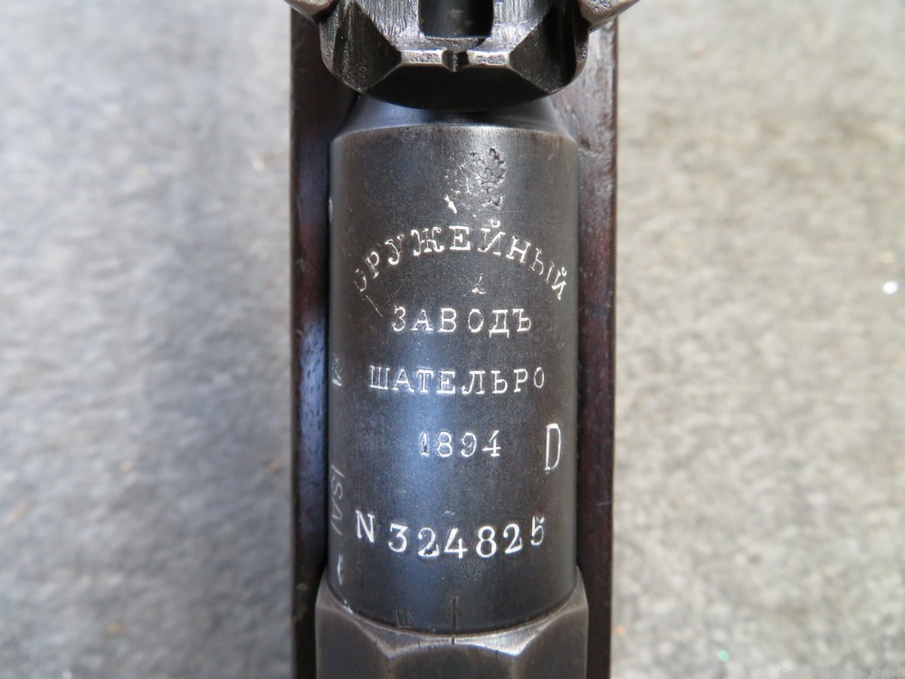 Very good condition antique Imperial Russian Model 1891 Mosin Nagant Rifle in 7.62 x 54r caliber that has Chatellerault Arsenal markings on the barrel and dated 1894. Rifle was captured and reissued by the Finns and has the Finnish army “boxed SA” property stamp on the left side of the barrel shank. Rifle is NOT import marked and has original matching serial numbers on the barrel and buttplate. Bolt was Finn renumbered to match. Floorplate does not match. Metal finish is original blue showing some wear. Bore is very good with strong rifling. Stock has original finish and shows some handling marks. Right side buttstock has an 1894 dated roundel cartouche. Rifle has the early triggerguard sling swivel. Complete with correct original cleaning rod and Finnish sling swivels. A rare and desirable Chatellerault M91 Mosin Nagant Rifle.