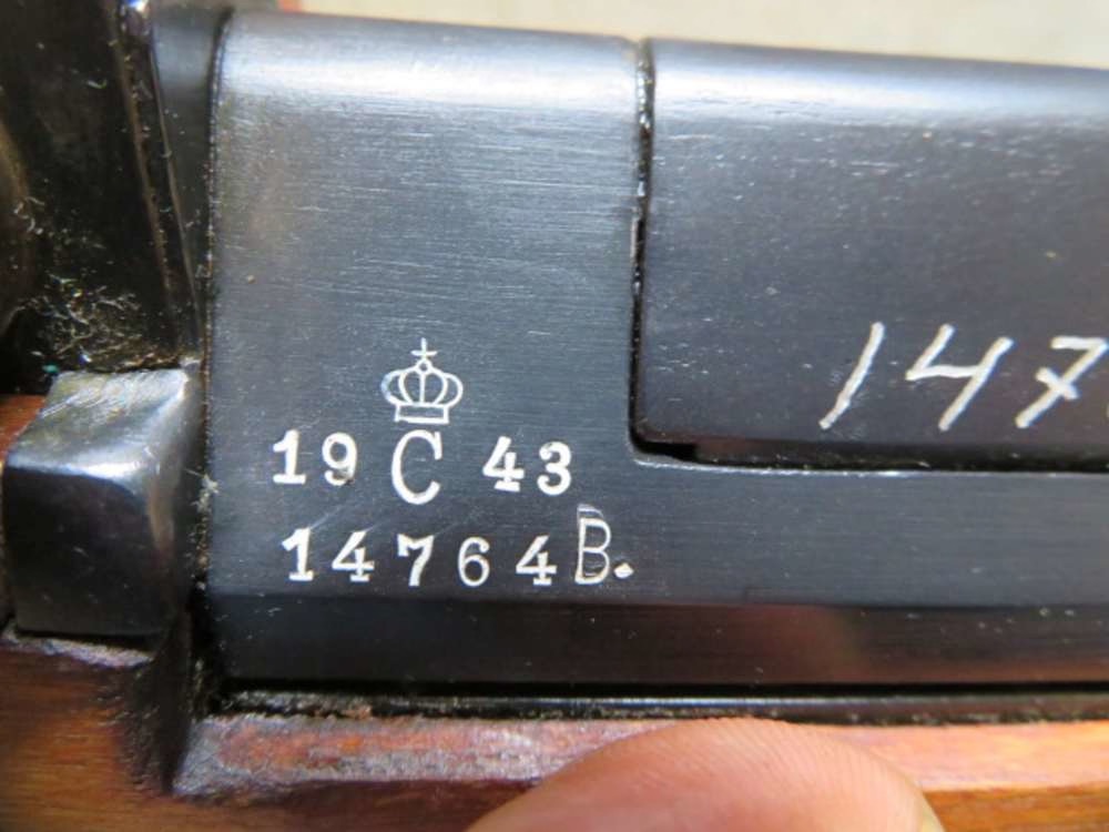 Excellent condition WWII Swedish AG 42/B Ljungman semi auto rifle in 6.5 x 55mm caliber that is marked “crown C” on the receiver for manufacture by Carl Gustafs and dated 1943. Rifle is import marked on the barrel and has all matching serial numbers. Metal finish is excellent arsenal reblue. Bore is bright and excellent with strong rifling. Stock has arsenal refinish and shows a few normal handling marks. Underside of wrist has a sharp clear “crown S” proof mark cartouche. Right side buttstock has original brass bore condition marking disc. Complete with correct original cleaning rod. A nice Ljungman Rifle for your collection!