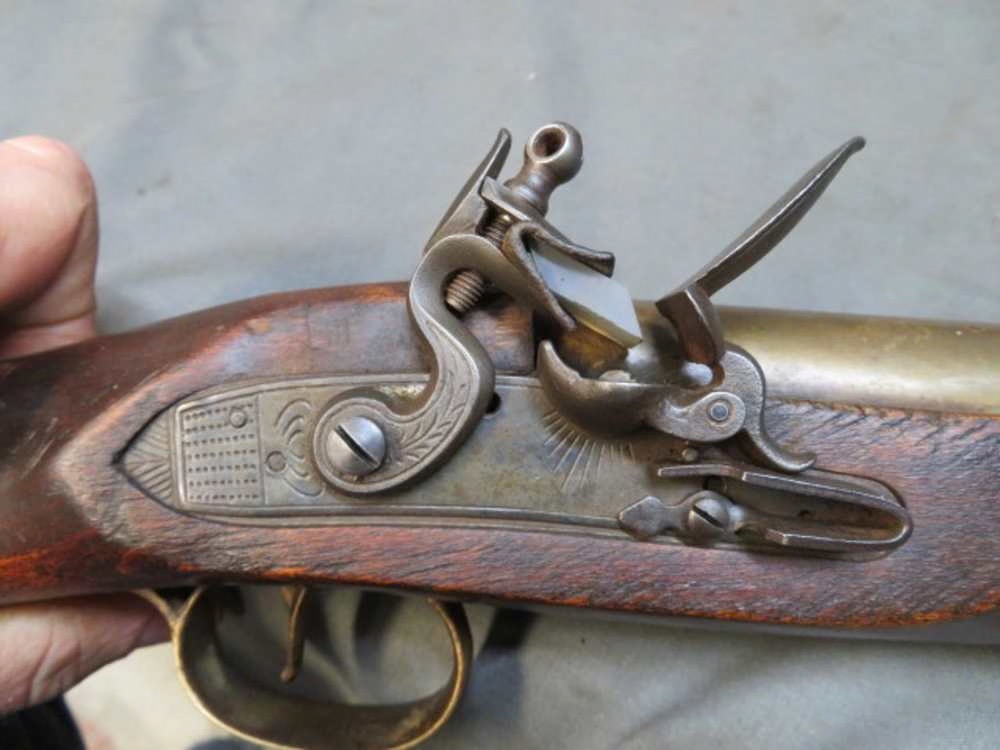 Very good condition CVA (Connecticut Valley Arms) reproduction flintlock blunderbuss musket in .69 caliber. Lock has original color case hardened finish. 16” brass barrel has attractive patina. Smooth bore is very good and bright. Stock has original finish and shows some normal handling marks. Complete with original brass-tipped wooden ramrod. A nice reproduction blunderbuss that will make a great addition to a collection, a fun shooter, or work well for a reenactor.