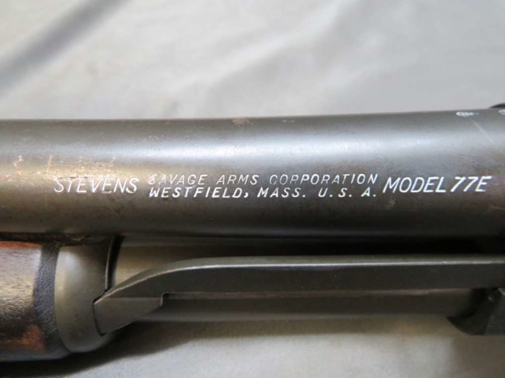Very good condition original Vietnam War US military issue Savage Model 77E Riot Gun 12 gauge pump action shotgun. Mechanically functions fine. Serial number 44xxx, which is in the correct range. Right side of receiver has original “U.S.” property marking. Receiver and barrel have “P” proof marks. Right rear of receiver is marked “SCHD”, indicating the gun was used to the South Carolina Highway Department after it was withdrawn from military service. Metal finish is nice original gray parkerized showing a little normal wear. 20” barrel has a very good bright bore. Stock has original finish and shows some normal handling marks. Gun has original factory red rubber recoil pad, which shows some cracking and is stiff. The Savage 77E was the only Vietnam War US military shotgun that came from the factory with a rubber recoil pad. A nice original Vietnam War Savage Model 77E Riot Gun.