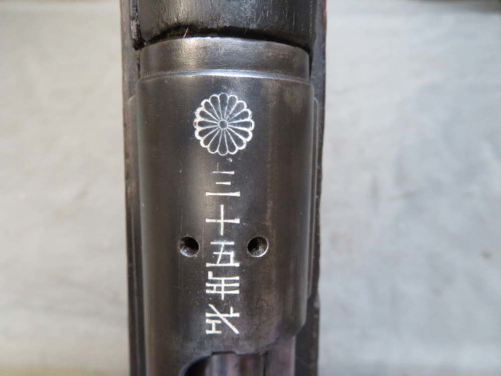 Good condition Japanese Navy Type 35 Arisaka “Hook Safety” Rifle in 6.5 x 50mm caliber that has a full untouched mum on the receiver and was manufactured by Tokyo Arsenal. This interesting gun was either captured by the Russians during the Russo-Japanese War or supplied to Russia during WWI, and wound up in Finnish stores (Finland was part of Russia until 1918), and has a Finnish Civil Gard “S 106346” district number marking in the right side buttstock for Jyvaskyla. Rifle is NOT import marked and has all matching assembly numbers except the bolt. Mechanically complete and functions fine. Metal finish is original blue showing some wear. Bore is dark with average rifling. Stock has original finish and shows heavy handling marks, dings, and gouges. Underside of buttstock has three small kanji character inspector proof marks and a naval arsenal anchor marking. Complete with a replaced cleaning rod. Muzzle has been slightly cut back. A rare Finn Civil Guard marked Type 35 rifle that will make a fine advanced addition to a collection.