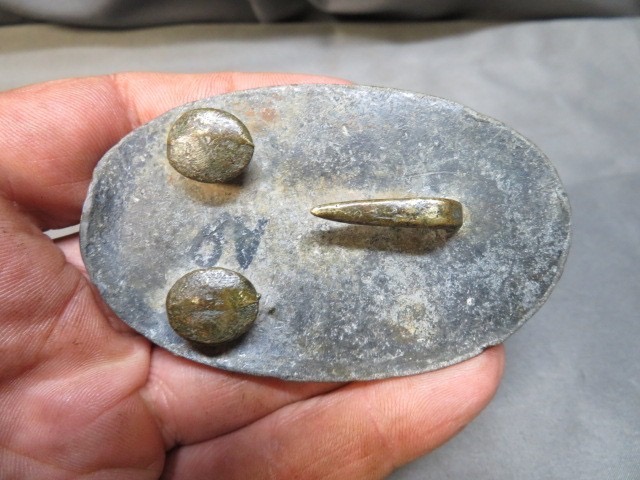 Good condition original Civil War US Model 1839 Federal Infantry Waist Belt Plate buckle. Nice looking 0patina with some dings. Edge has a bend. Has an old inventory marking on the back-“A9”. Classic Civil War buckle that will make a great addition to a collection!