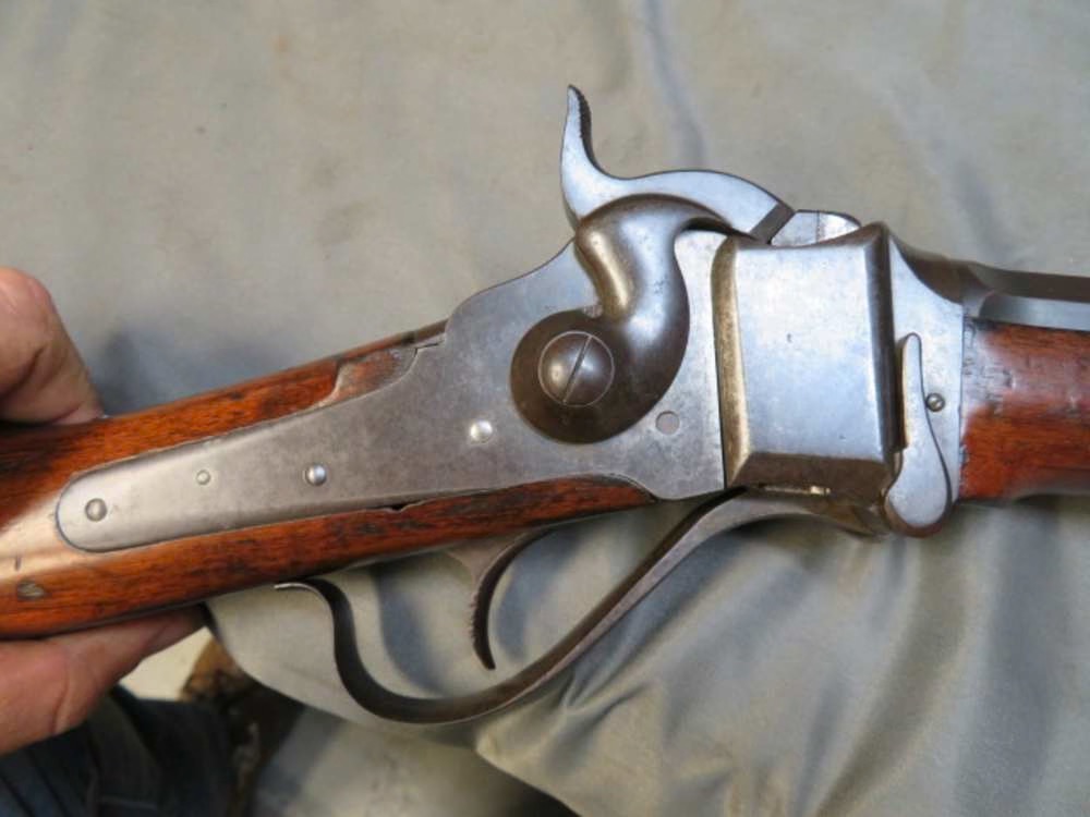 Excellent condition antique Sharps Model 1874 sporting “Buffalo” rifle in .50-70 Government caliber. Mechanically, it functions fine and has good markings and a single trigger. The receiver has original case colors faded to brown and gray patina. The remaining metal finish is original blue, showing some wear to brown and plum brown patina. 30” half octagon, half round barrel has original sights. Bore is good with strong rifling and some light pitting. Has a pitted ring a few inches from the muzzle. The stock has its original finish and shows some normal handling marks. A nice Sharps Buffalo Rifle that will make an excellent addition to a collection.