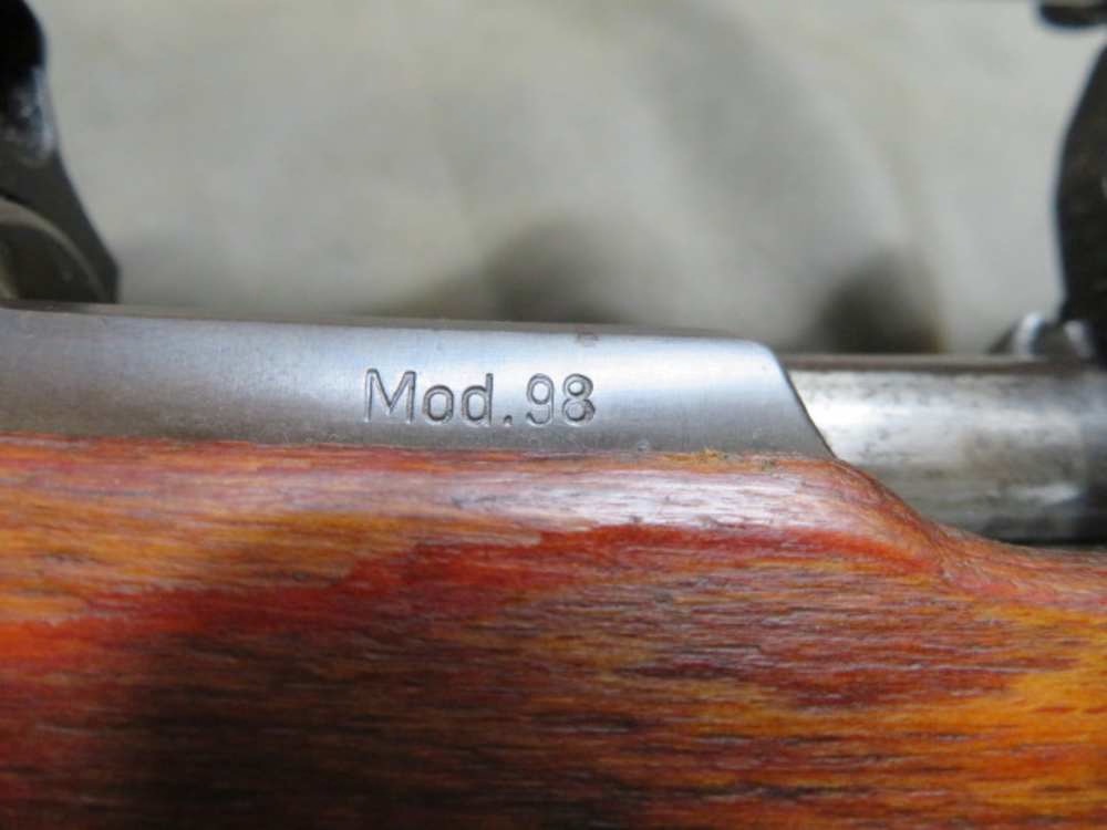 Very good condition WWII German style ZFK98K (98k) Mauser Low Turret Sniper Rifle in 8mm Mauser (7.92 x 57) caliber. Rifle is fitted with an original scope, but the rings and mounts appear to be reproductions. Scope has clear optics with a simple crosshair reticle, and original blue finish with a few spots of pitting. Marked “HENSOLDT-WETZLAR DIALYTAN 4x 7430”. Rifle is NOT import marked and has matching serial numbers on the receiver, triggerguard, floorplate, and follower. Otherwise nonmatching. Bolt has a “key” style safety, uncertain of its originality. Metal finish is original blue showing some normal wear. Bore is bright and excellent with strong rifling. Stock was Yugoslavian arsenal refinished and shows some normal handling marks. Wrist has a repaired crack through both sides. Handguard has a crack. Left side buttstock has a Yugo-added nonmatching serial number. Complete with correct original cleaning rod and front sight hood. A nice looking WWII German type 98k Mauser sniper rifle, will make a good display or for use by a reenactor.