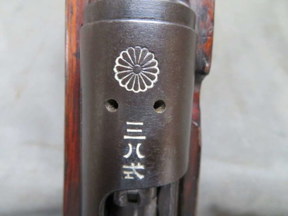 Very good condition WWII Japanese Test Type 1 Folding Stock T-38 Arisaka Carbine, as issued to paratroopers. Manufactured as part of the 4th Series by Nagoya Arsenal and has a full untouched mum. Gun is NOT import marked and has all matching serial numbers including receiver, front band, floorplate, and bolt body. Metal finish is original blue showing some wear. Bore is bright and excellent with strong rifling. Stock has original finish and shows some handling marks. Both sides of wrist have a chip by the receiver tang. There is a wood shim to tighten up the folding mechanism. Right side buttstock has large branded kanji characters. Underside of buttstock has two small kanji character inspector proof marks. The folding mechanism works fine and is complete. There are separate matching numbers on the takedown hinge parts, triggerguard tang, and buttplate. Complete with correct original cleaning rod. A very rare and desirable WWII Japanese Test Type 1 Arisaka Folding Stock Carbine, with only an estimated 200-300 produced, that will make an excellent advanced addition to a collection!