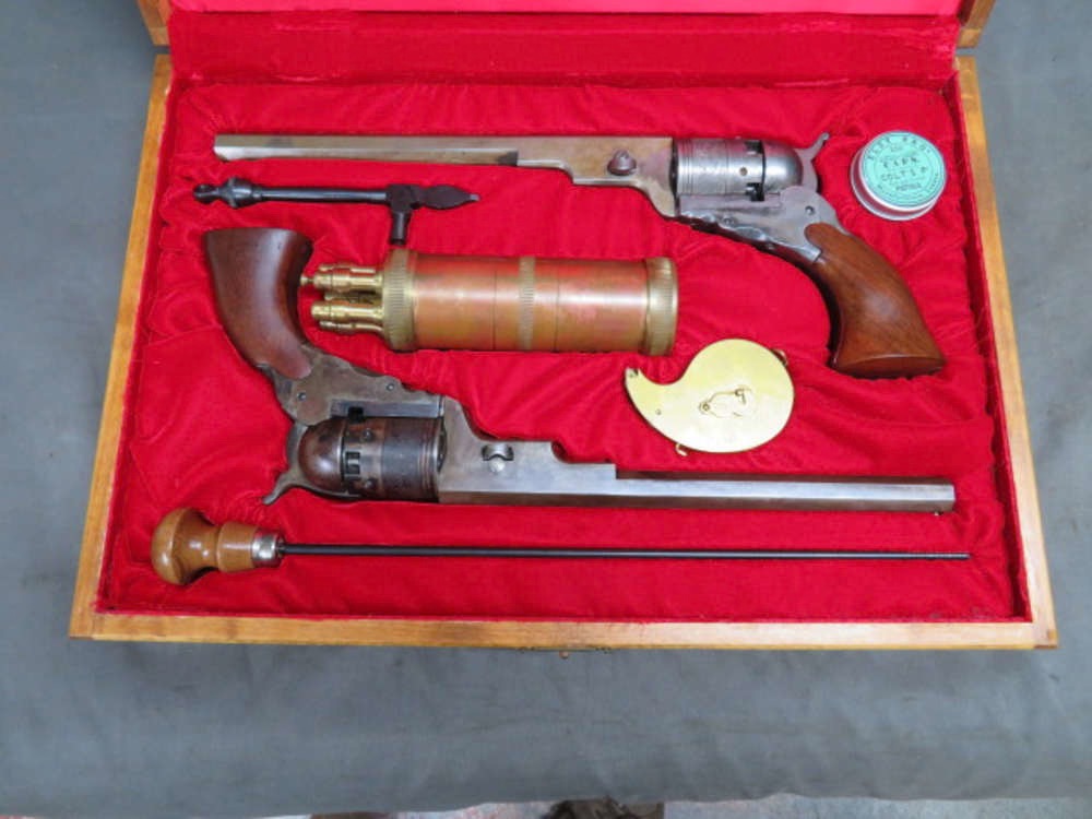 PAIR OF REPRODUCTION COLT TEXAS PATERSON REVOLVERS W/ CASE & ACCESSORIES