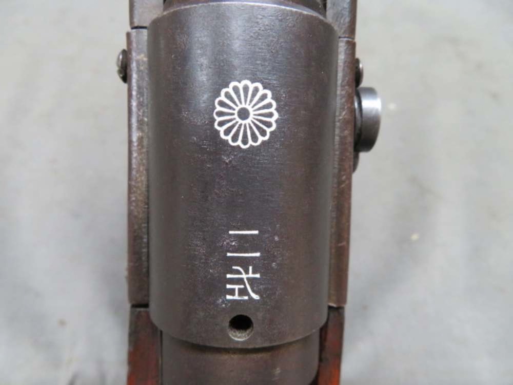 Fine condition WWII Japanese Type 2 Arisaka Paratrooper Rifle in 7.7 x 58mm caliber that has a full untouched mum on the receiver and the Nagoya Arsenal marking in the receiver side rail and the model designation in kanji characters on the receiver ring. Rifle is NOT import marked and has all matching serial numbers including receiver, barrel, front band, bolt body, extractor, safety, and firing pin. Also has correct separate set of matching numbers on the takedown mechanism parts and barrel, except the takedown pin. Metal finish is nice original blue showing a little normal wear. Bore is bright and excellent with strong rifling. Stock has original finish and shows some normal handling marks. Underside of buttstock has two small sharp clear kanji character inspector proof marks. Complete with correct original cleaning rod and anti-aircraft rear sight wings. A very nice WWII Japanese Type 2 Arisaka Paratrooper Rifle with matching numbers!