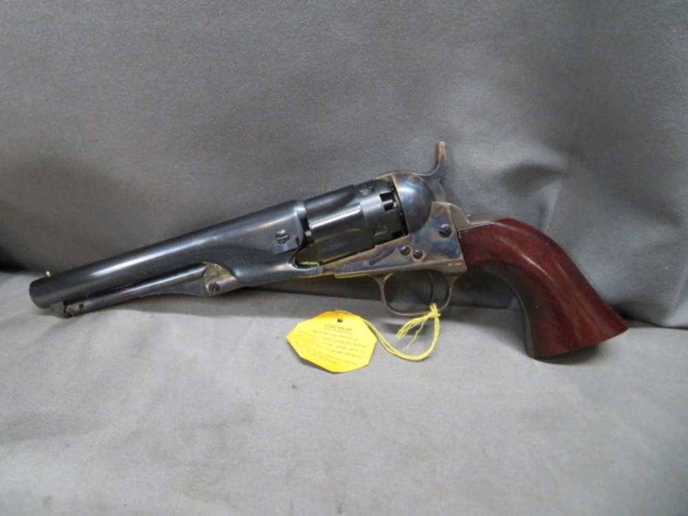Excellent, new unfired condition Colt 2nd Generation Model 1862 Police Revolver in .36 percussion caliber. Mechanically tight and excellent. Beautiful blued, case colored, and silver finish. New unfired bore, bright with sharp rifling. Excellent wood grip with original finish. Box is in good condition. Nice, high quality reproduction Colt 1862 Police Revolver!