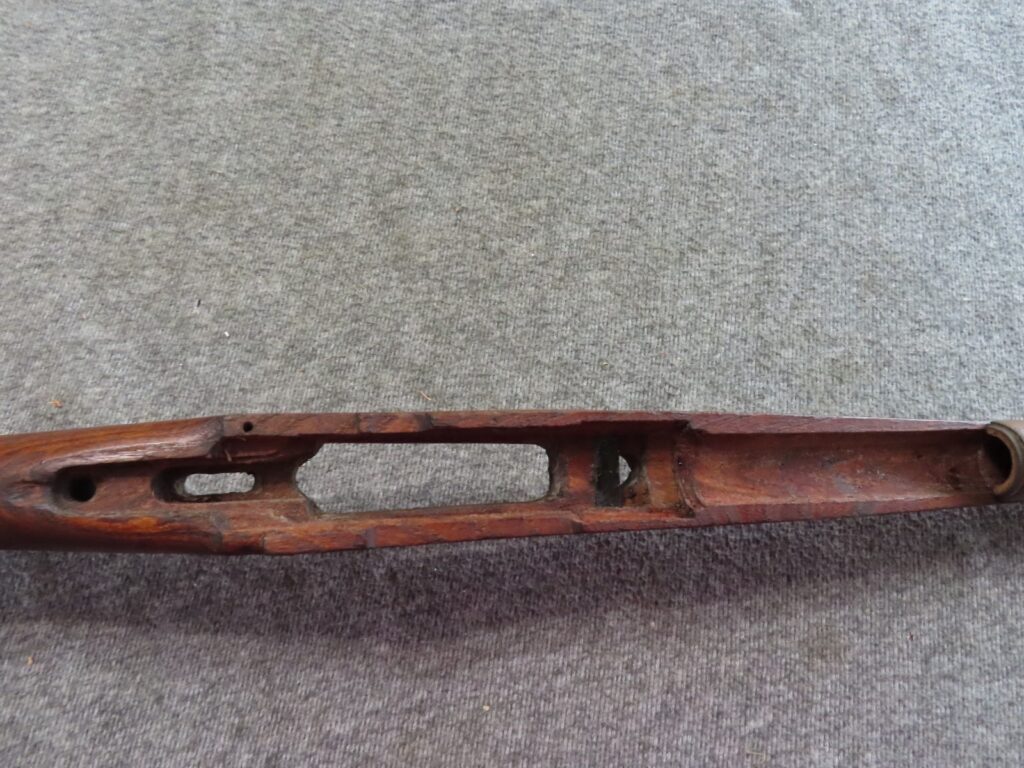 BANDS, BUTTPLATE AND BAYO LUG. FULL LENGTH HARDWOOD WITH FLAT BUTTPLATE, SOME HANDLING MARKS AND SCRATCHES AND SERIAL NUMBER ON THE LEFT SIDE ALONG WITH SOME PITTING ON THE METAL. A HARD TO FIND STOCK SET. USE TO COMPLETE YOUR GUN OR SAVE FOR LATER USE.