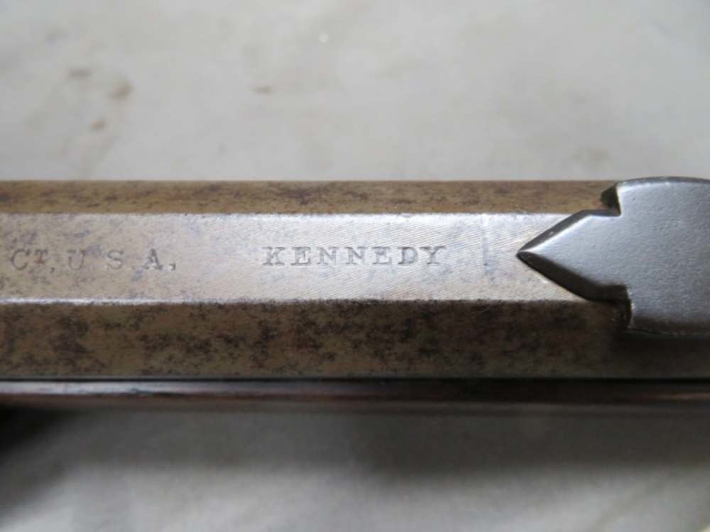 Good condition antique Whitney Kennedey lever action small/light frame rifle in .44-40 Winchester caliber. Mechanically functions fine. Metal finish is original blue showing wear to brown and gray patinas. 24” octagonal barrel has original sights. Bore is fair with some pitting and has average worn rifling. Forend has original finish and shows some wear and handling marks. Both sides have a crack. Buttstock has been refinished. Wrist has a few hairline cracks. Buttplate has a chip at the toe. A hard to find Whitney Kennedy lever action rifle in any condition!