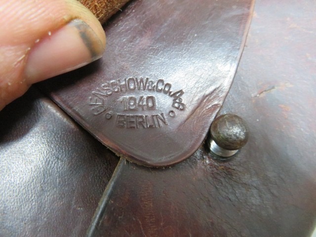 Very good condition original WWII German Mauser HSC pistol holster. Maker marked “GENSCHOW & CO. A.-G. BERLIN” on the breakaway flap and dated 1940. Has inkstamped model designation marking under the flap. Breakaway flap has a scratched name, Leather is soft and supple with some normal wear and crazing. Stitching is mostly tight except for a little loss on the belt loop. Holster is complete. Nice Mauser HSC holster for your collection.