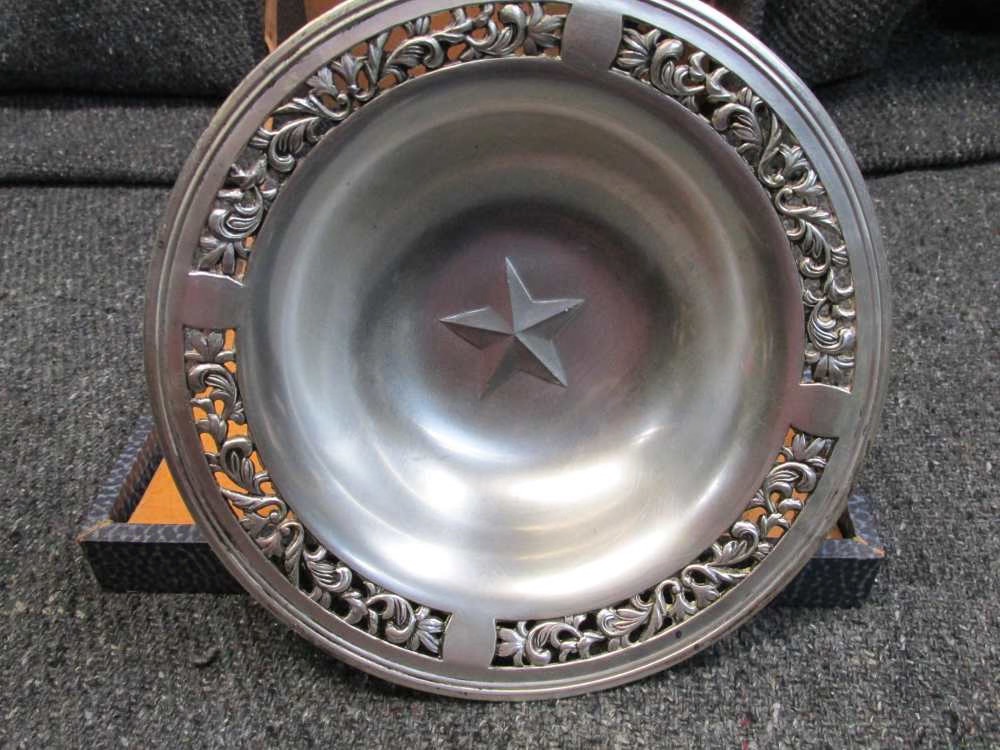 WWII Japanese military silver dishes on pedestals are collectible artifacts, often featuring military insignia like an Army star. Used as presentation pieces or in senior officers’ messes. Appears to be silver plate, cannot find any markings. Sought by militaria collectors for their historical craftsmanship. On the top and the base are floral and other designs with much detail. Measures; 6 ½” across and 3″ tall. Comes in its original presentation box with information on the maker included. On the top of the box are artillery pieces, an airplane and Kanji markings. Very nice, Very hard to find piece of Japanese military history for your collection and display. TOP OF THE BOX HAS A PARTIAL TRANSLATION OF “PATRIOTISM 38, KYTO, JUNE SHOWA 7”.