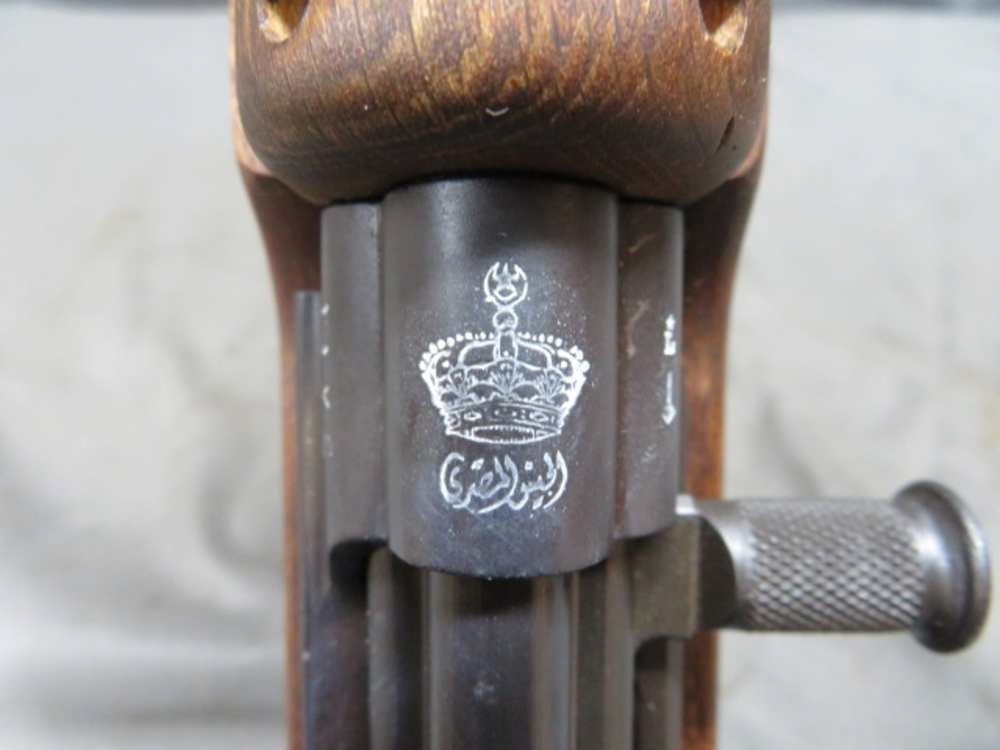 Very good condition Egyptian FN 49 semi auto rifle in 8mm Mauser (7.92 x 57) caliber that has a sharp clear King Farouk crown crest on the receiver ring and Fabrique Nationale manufacturer markings on the receiver side rail. Mechanically functions fine. Magazine has a few dings. Rifle is import marked on the barrel and has nonmatching numbers. Metal finish is nice arsenal reblue. Bore is very good and bright with strong rifling. Stock is a Century Arms manufactured replacement with a black plastic buttplate, and has nice original finish. A nice Egyptian FN 49 for your collection.