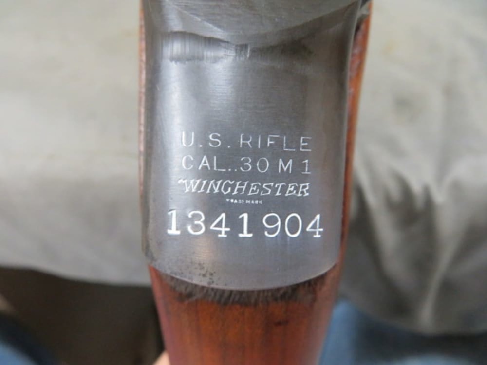Very good condition WWII US military M1 Garand semi auto rifle in .30-06 caliber that was manufactured by Winchester, as marked on the receiver. Serial number 1341xxx, which dates it to manufacture in May 1943. Rifle is NOT import marked and has all Winchester parts. Uncut op rod and lock bar rear sight. Metal finish is nice original gray parkerized showing a little normal wear. Bore is good, bright with good average rifling that shows some wear. Stock was lightly buffed and refinished, and has attractive color. Left side of stock has faint “W.R.A. G.H.D.” and ordnance wheel cartouches below the receiver. Underside of wrist has a “circle P” cartouche. Right side buttstock has a faint “159” marking. A nice Winchester M1 Garand that will make an excellent addition to a collection!