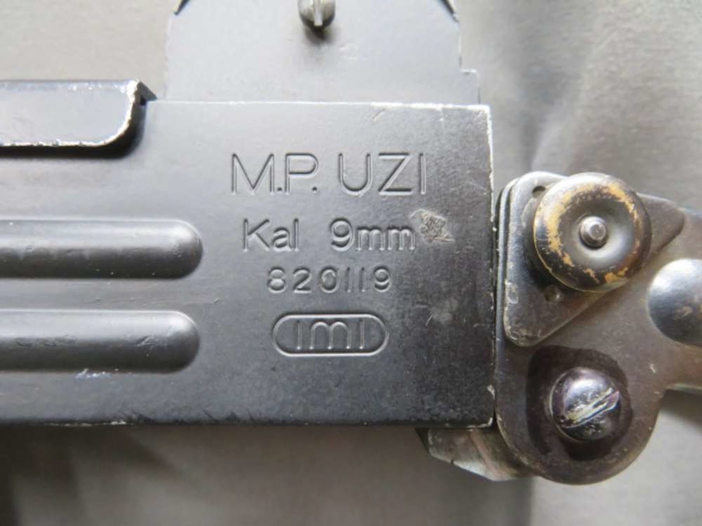 Very good condition original movie prop blank fire Uzi submachine gun from Sturbridge Rentals. Mechanically functions fine and complete with original magazine. Metal finish is original black showing some normal wear and handling marks. Black plastic furniture shows some normal handling marks. Folding stock works fine. A nice Uzi replica that will make a great addition to a collection or display and work well for a reenactor.