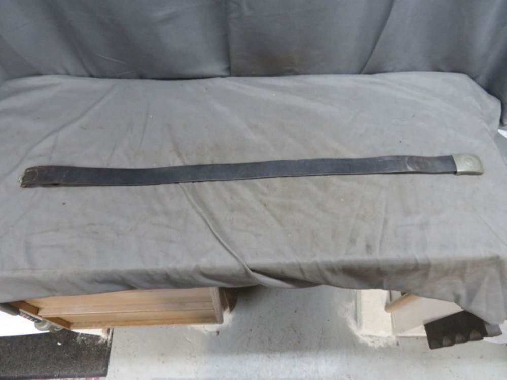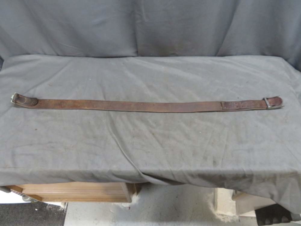 Very good condition original WWII German army belt and buckle set. Buckle has nice detail and original green paint and is maker marked “B&N-43” on the back for Berg & Nolte in 1943. Leather belt is soft and supple with some normal wear and has a Motorcycle Infantry unit marking. Marked for size 100. Nice Heer belt and buckle set.