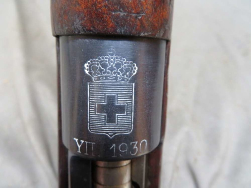 Good condition WWII Greek FN Model 1930 Mauser Rifle in 8mm Mauser (7.92 x 57) caliber that has a nice Greek shield crest on the receiver ring and Fabrique Nationale manufacturer markings on the receiver side rail. Rifle is NOT import marked and has matching serial numbers on the receiver and bolt. Stock does not match but is correct Greek M1930. The “H” (Eta) serial number prefix is from a contract that was partially delivered to the Greeks in 1940, with about 3,000 being captured by the Germans during the 1940 invasion of Belgium. Metal finish has been reblued. Bore is very good with strong rifling. Stock has original finish and shows some handling marks. Left side buttstock has a faint Greek roundel cartouche. Complete with cleaning rod. A good example of a hard to find Greek FN M1930 Mauser Rifle.